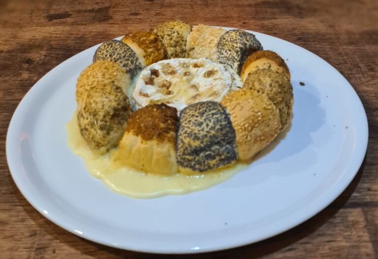 Met brood, aardappelen in de schil, uitjes, augurken en saladbar